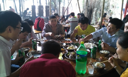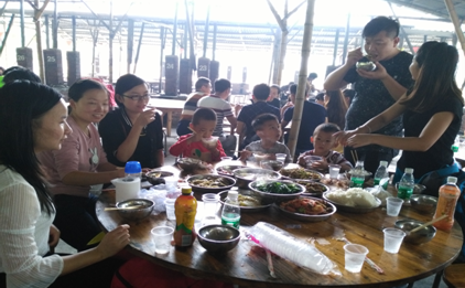 一起分享集體協(xié)作的成果,雞,魚,蝦,排骨等等,對(duì)了,還有餃子,像魔法一樣呈現(xiàn)在大家面前,話不多說(shuō),趕緊大快朵頤,下午還有更精彩的行程等著我們!