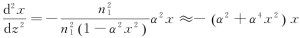 將自聚焦光纖內(nèi)的傍軸光線再分成近軸光線和遠軸光線。所謂近軸光線就是擺動的光線離軸線不遠,即α2x2?1,可以有近似則式可以近似成