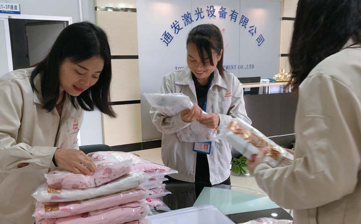 誰說紅顏不封侯,誰說女子不如男??v觀歷史長河,花木蘭從軍,穆桂英掛帥……我們從事的崗位不同,職責也不盡相同,尤其說道女性。二十一世紀的女性,不僅要貌美如花,還要掙錢養家,背負著精神上和身體上的聚大壓力一路奮勇直前,無怨無悔。她們心中有愛,善良永存。“三八婦女節”緩緩到來,為了體現公司對廣大女性的關愛,通發激光的領導們已早早準備好精美的禮物,為公司里辛勤工作的小花們慶祝婦女節。