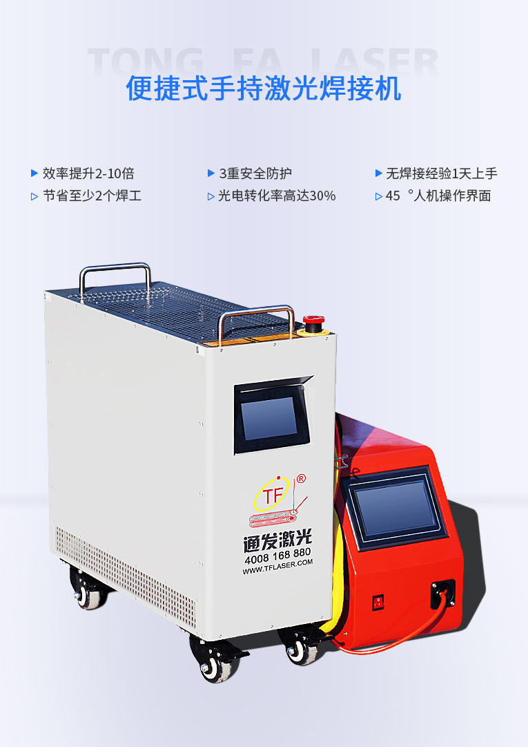通發(fā)激光便捷式手持激光焊接機,小巧便攜,方便移動,適合戶內(nèi)外外工地移動焊接,是遠距離焊接大工件的全新焊接利器。